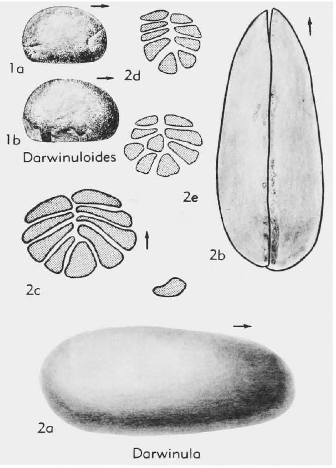 Fig. 183,1. *D. oviformis (Mandelstam), 1a,b, RV lat., RV lat., X45 (50).