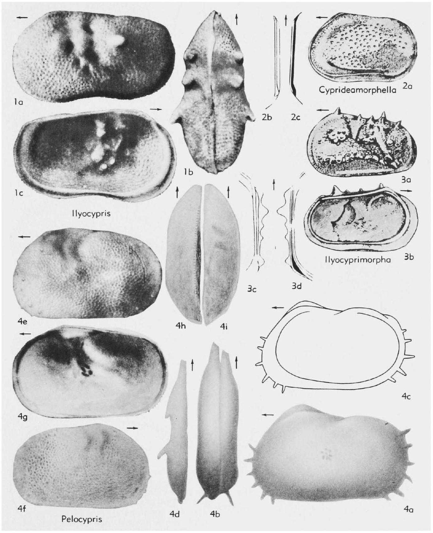 Fig. 176,1. *I. gibba (RAMDOHR), Rec., N.Eu.-N.Am.; 1a,b, carapaceL, dors., X60; 1c, LV int., X60 (82).