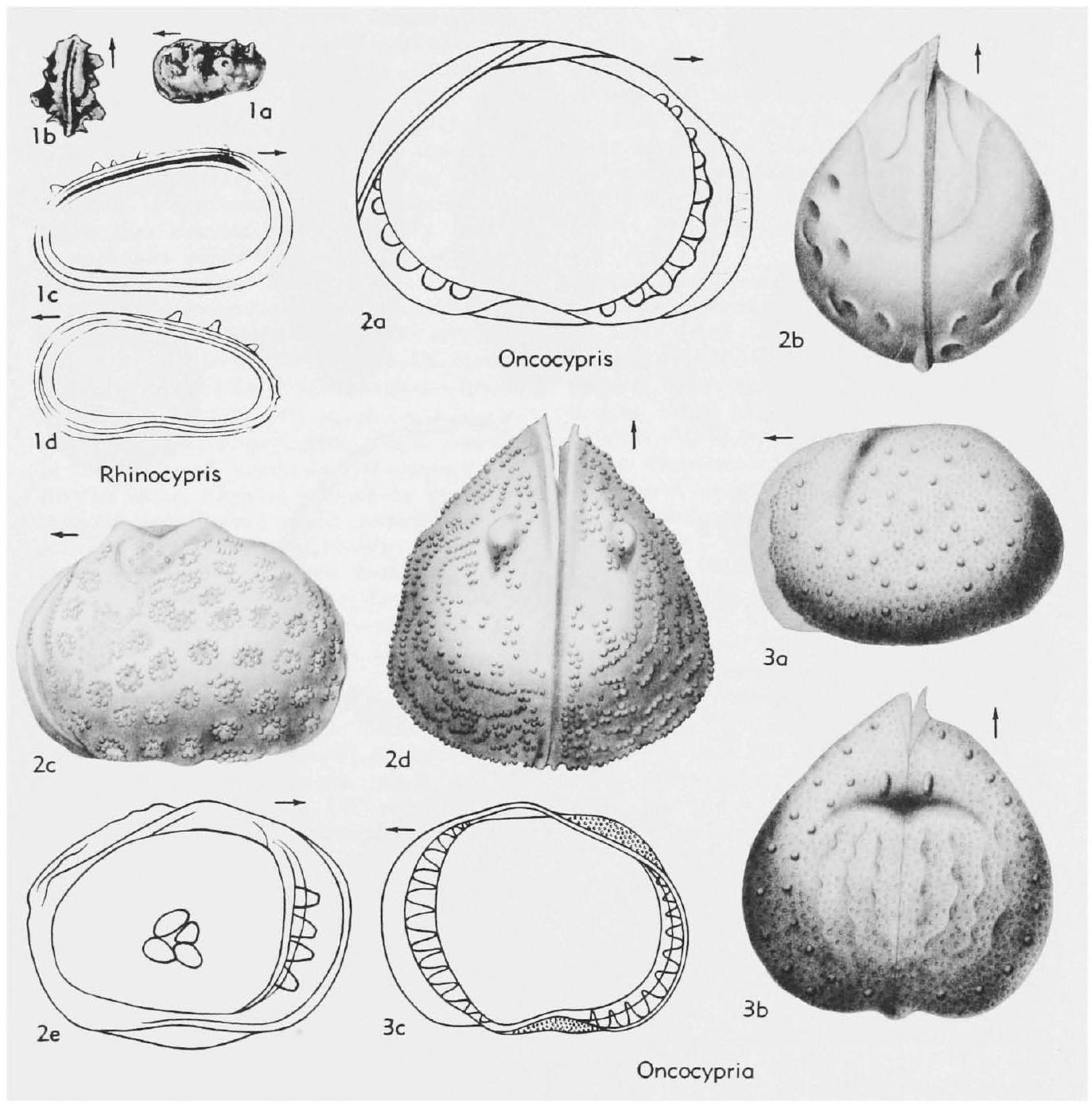 Carapace very small, ovoid, shell thin, LV slightly larger than RV, internally a narrow shelf of uniform width all round except dorsally, shallow groove extending from middle of dorsal margin almost to center of each valve with smaller groove anterior to this, carapace widest in front. Hinge simple, knurled anteriorly and flexed to right posteriorly, slight overlap of LV over RV on all margins except dorsally, greatest ventrally, ventral margin slightly concave, surface covered with minute closely arranged blunt spines or pustules of uniform size. Fresh-water.