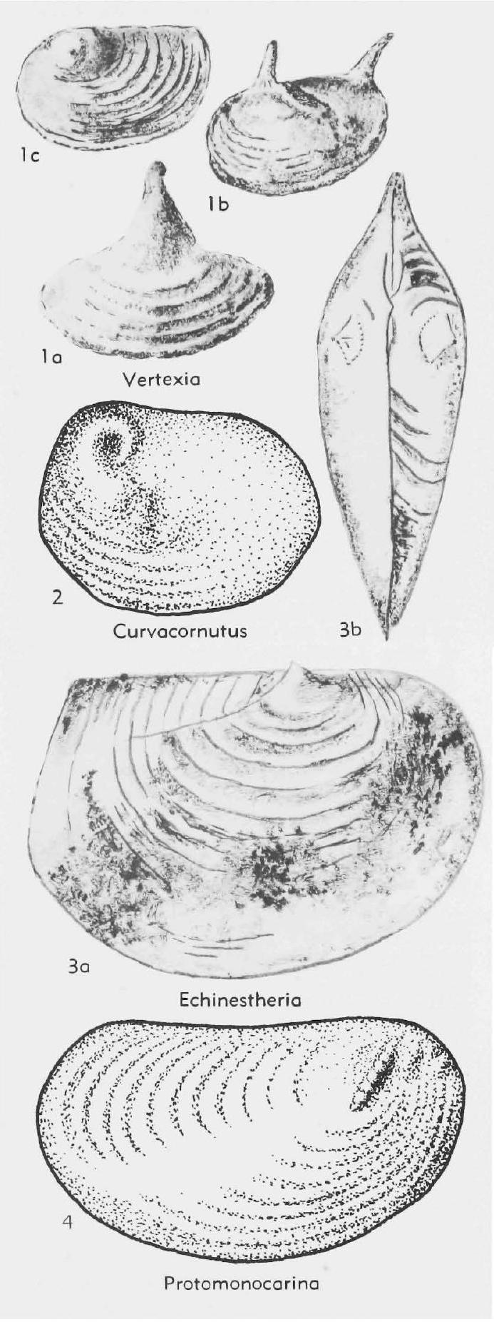 Carapace subovate, beak (of larval valve) developed as hollow spine with broad base, spinous apophyses terminate extremities of growth bands, last apophysis a broad-based spine, Sculpture punctate